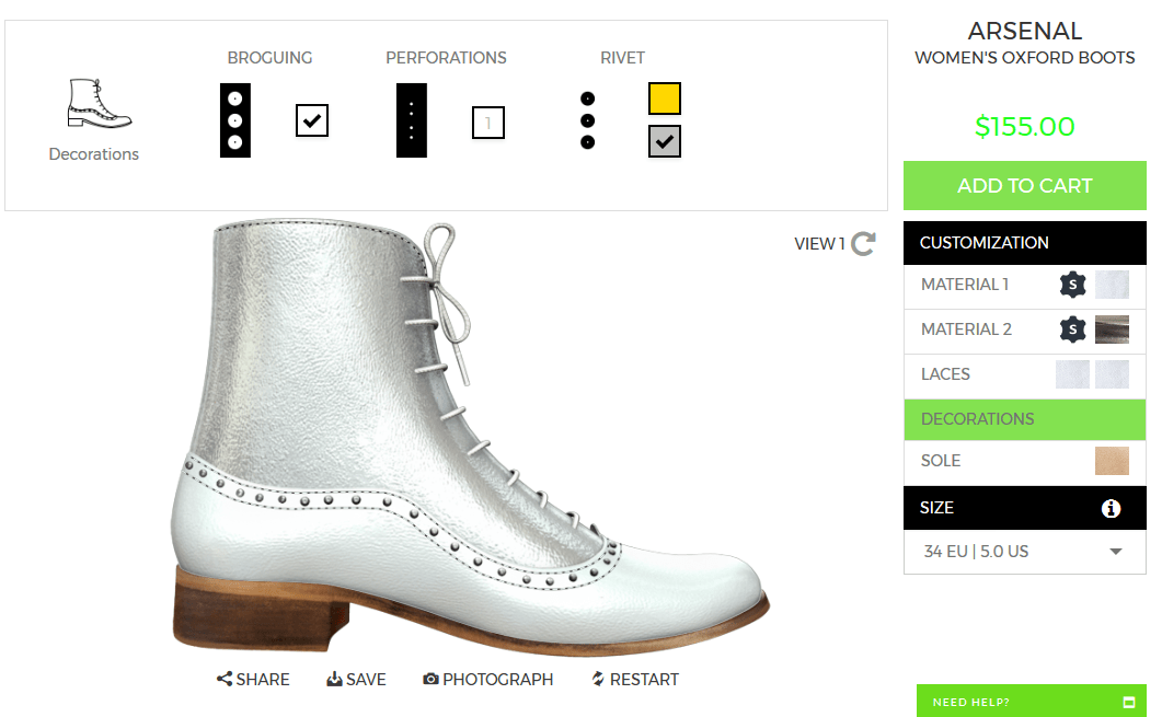 JuliaBo is a footwear company which provides Shoes for sale and we have integrated our shoe customization tool as per their requirement. Customer will primarily have to select the type of shoe they wish to customize. It can select a leather/ material from the predefined ones, customer will then choose the color as per their selected material. It can also decorate the shoe by setting up initials as well as lace colors.